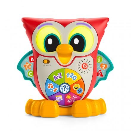 1.寶寶可以按下費雪LINKIMALS聲光學習小貓頭鷹肚子上的按鈕並讓他左右搖晃。